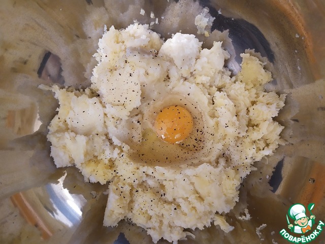 Добавим яйцо, соль, перец, мускатный орех. Перемешаем.