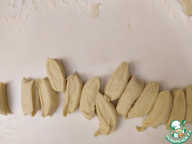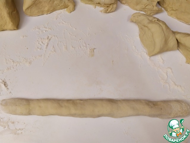 Каждую часть раскатаем в колбаску шириной около 2.5 см.