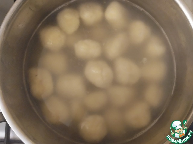 Закинем приготовленные ньокки и подержим на огне пару минут.