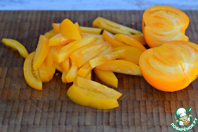 Все ингредиенты нарезать крупными брусочками примерно одинакового размера.