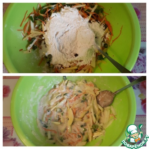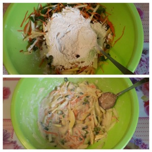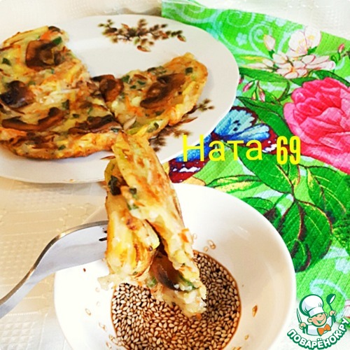Получилась очень вкусная овощная лепешка или овощной блин. Подавать можно с любым соусом по вашему вкусу. Я сделала такой соус- 1 ст. л. соевого соуса,1 ч. л. уксуса (я брала винный) и 1 ч. л. кунжута. Приятного аппетита!