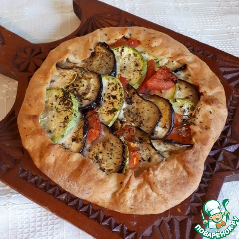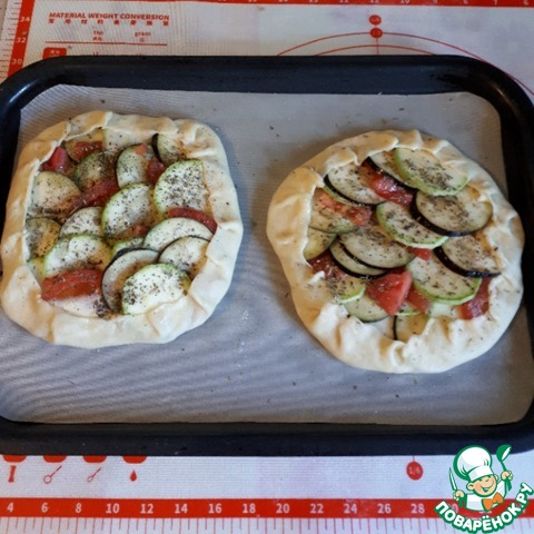 Подогнуть свободные края теста, защипывая его по кругу. Овощи смазать растительным маслом, посолить и поперчить по вкусу.