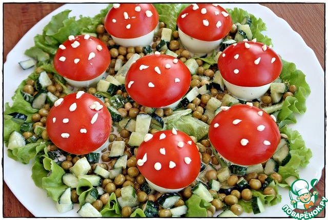 Салатик такой не помню, но мухоморчики очаровательны. Фотографии