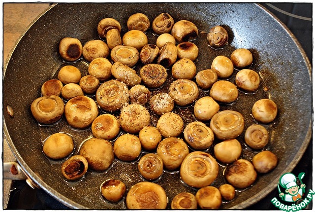 У меня были крупные шампиньоны, поэтому разрезала пополам.
