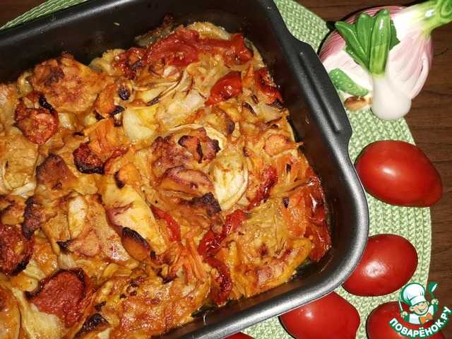 Курица, запечённая с овощами в ароматном соусе. Подобных рецептов более десятка на сайте. Рецепт универсален, его можно приготовить как для семейного обеда, ужина, так и на праздничный стол. Рассчитан, конечно, не для гуру кулинарии, а обычных домашних хозяек, даже больше, для начинающих. Надеюсь, пригодится. Вкусно, красиво, аппетитно, из простых продуктов и без всяких заморочек.
