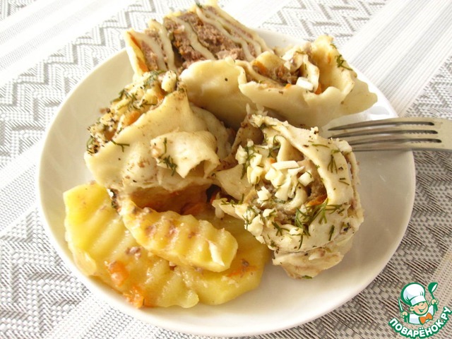 Ингредиенты для «Штрули с фаршем и овощами»:
