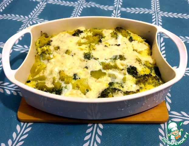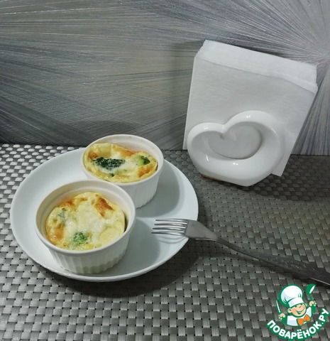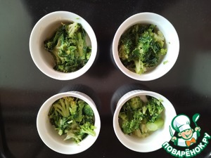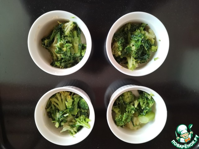 Брокколи разобрать на соцветия, стебель нарезать мелкими кусочками, разложить по формочкам. -