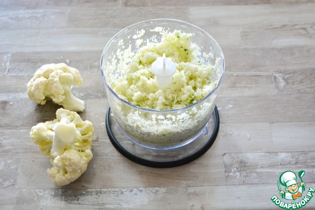 Цветную капусту нарежьте произвольно и измельчите вместе с петрушкой в процессоре (или через мясорубку) в мелкую крошку.