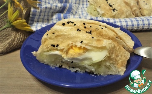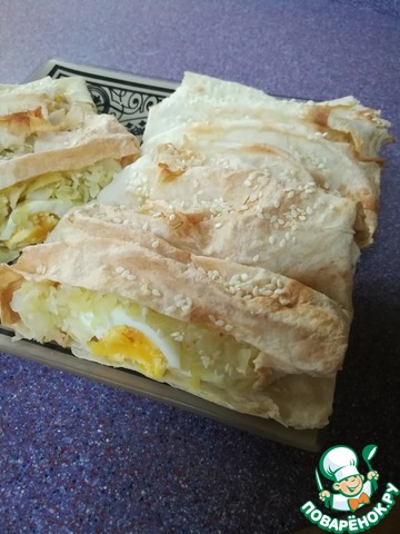 Рецепт «Капуста с яйцом в лаваше "Гармошка"»: