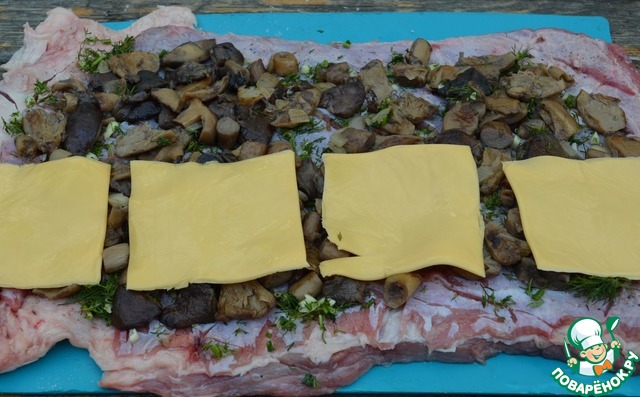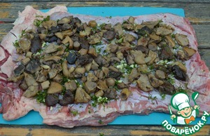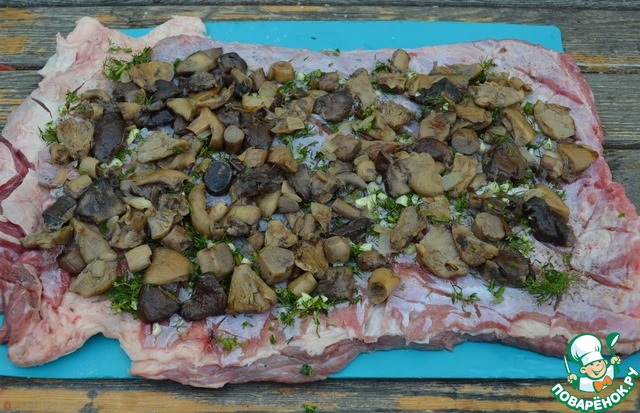 Ингредиенты для «Мясной рулет с грибами и луком»: