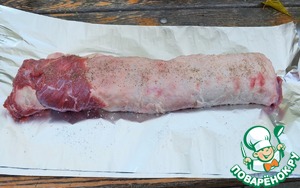 Пласт говяжьей пашины вымыть, обсушить, по всей площади сделать надсечки острым ножом, посолить, поперчить.
