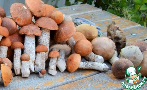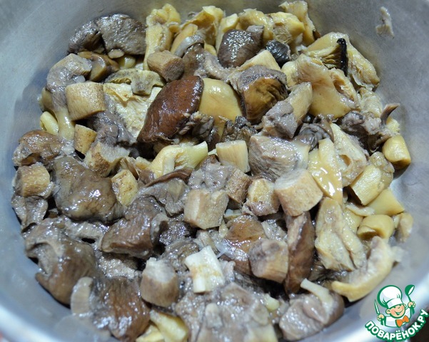 Лесные грибы отварить (25-30 минут), промыть, дать стечь воде.