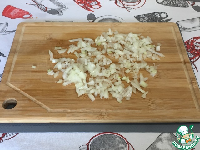 Мелко нарезаем лук.