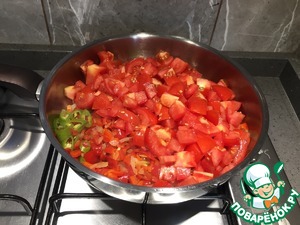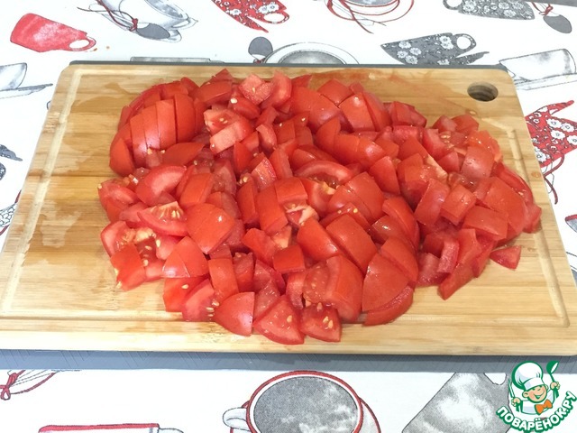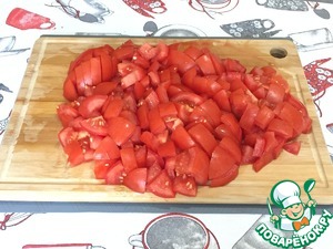 Затем нарезаем помидоры кубиком.