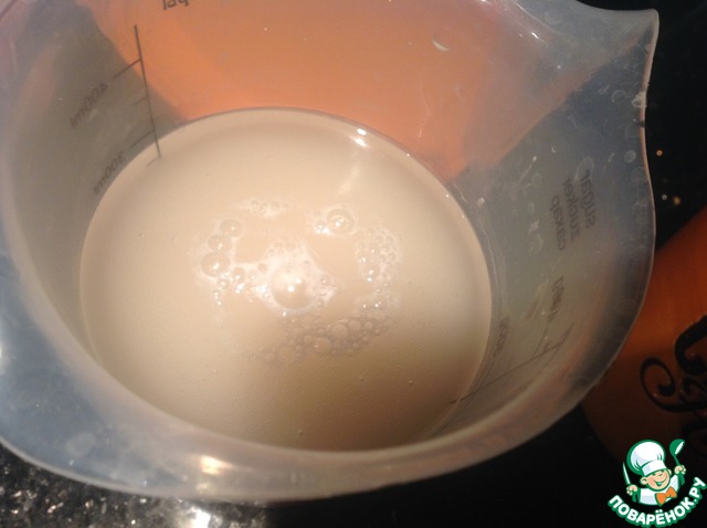 Дрожжи растворите в тёплой воде, добавьте сахар, 1 ст. л. муки, хорошо перемешайте и дайте постоять 10 мин.