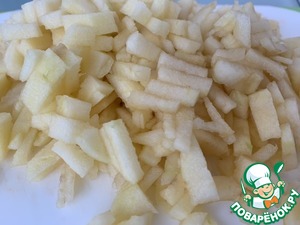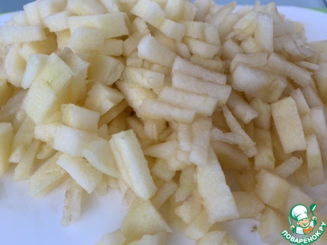 Яблоко очистите от кожуры, удалите сердцевину и нарежьте маленькими тонкими кусочками.