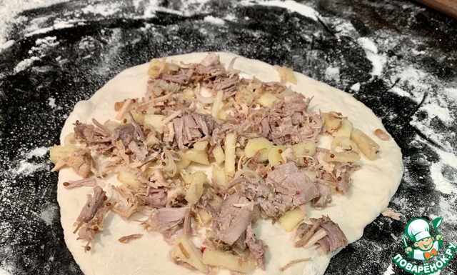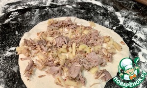 Приготовим начинку: индейку нарежьте маленькими кусочками.