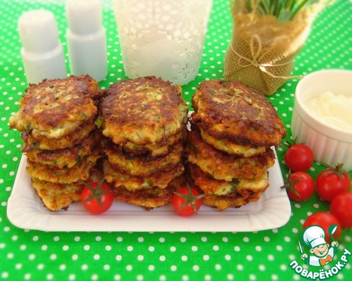 Кабачковые оладьи с брынзой и плавленым сыром