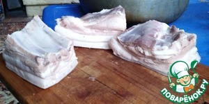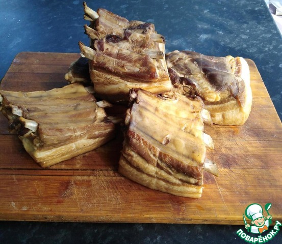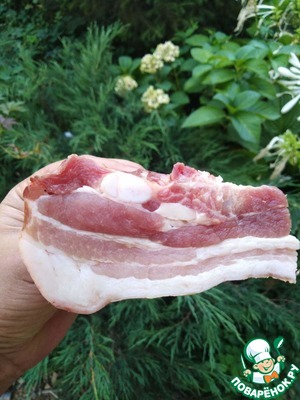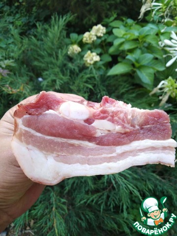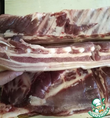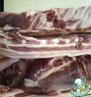 Сало с мясной прослойкой, называется грудинка. Рёбрышки лучше срезать, но я решила оставить.