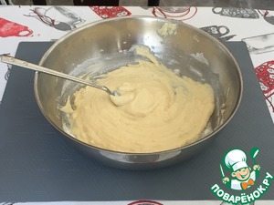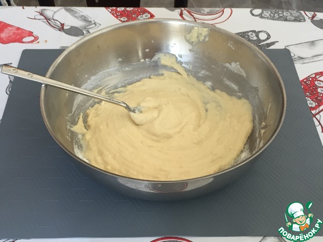 Добавляем 2 ст. ложки сметаны или домашнего йогурта. Столько же майонеза и перемешиваем. Всыпаем муку, соль по вкусу и перемешиваем до получения однородной массы без комочков.