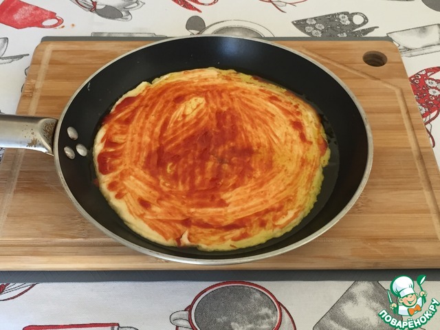 Поверхность пиццы я помажу кетчупом. Мне это удобно делать кисточкой.