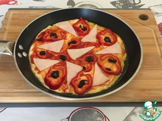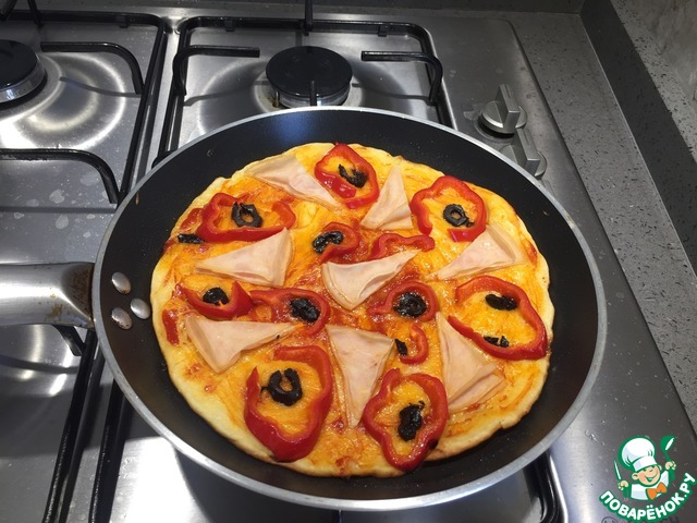 Пицца будет готовится 25 минут на самом маленькой огне под закрытой крышкой.