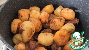 Жареную картошку и голени посолите, добавьте примерно 100мл масла и тушите на медленном огне под крышкой 20 минут.