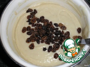 Затем добавить в тесто изюм и хорошо перемешать. -