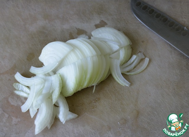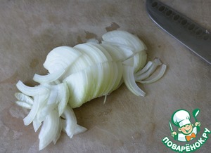 Лук чистим, режем тонкими полукольцами или четвертинками.