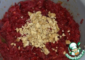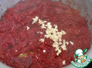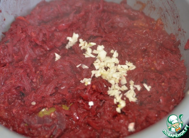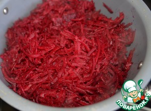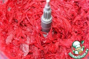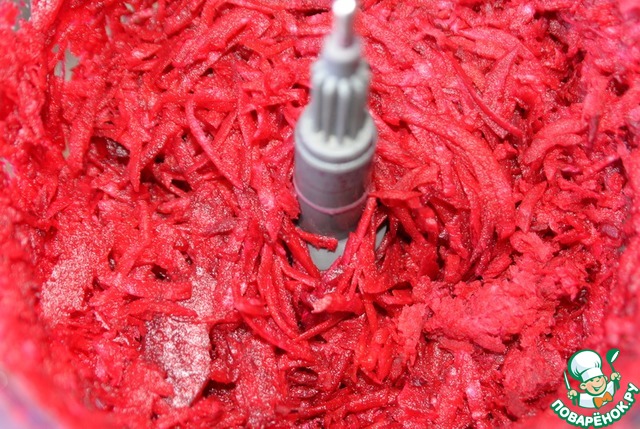 Свеклу чистим, натираем на тёрке или измельчаем с помощью комбайна.