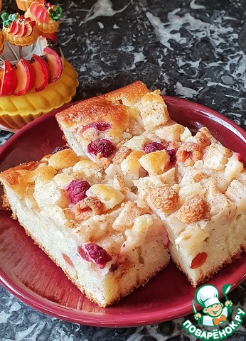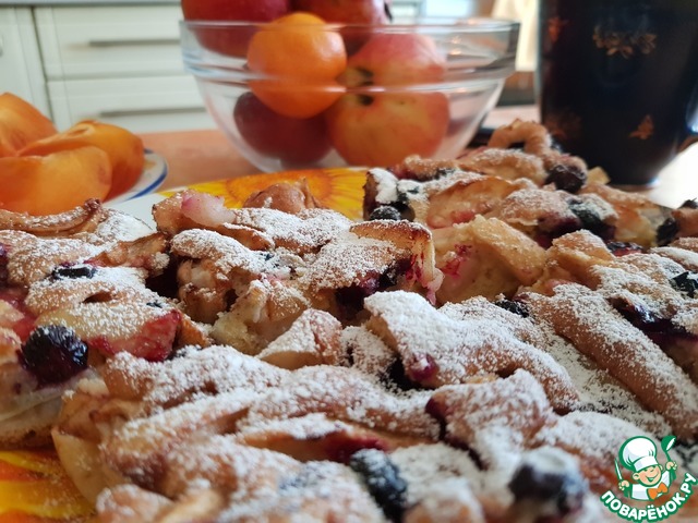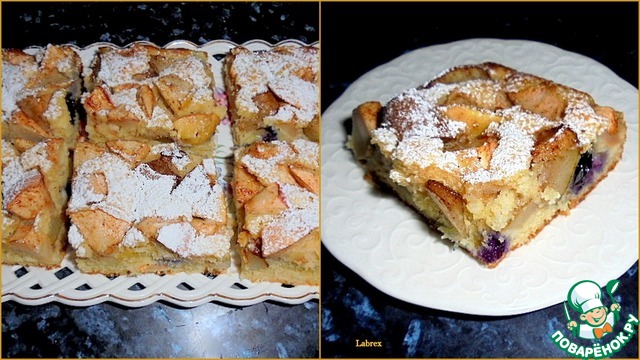 Простой каждодневный пирог. Используем сезонные фрукты, которые быстро портятся. Слегка влажное тесто, но у меня начинки много. Если взять меньше, то пирог выше поднимется. Ягоды-по желанию. Форма 24 см на 16 см