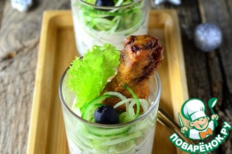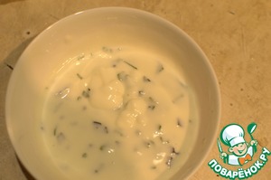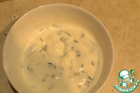 Смешиваем мелко нарезанный базилик с растительным маслом и мелко нарезанным чесноком, оставляем минут на 15, затем добавляем йогурт, сметану, лимонный сок, измельченный кориандр и смесь перцев, тщательно перемешиваем.