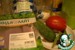 Нарезаем тоненько помидорки и огурец, смазываем сначала внутри лепешку соусом, затем наполняем овощами и индейкой, и добавляем соус.