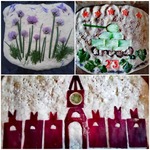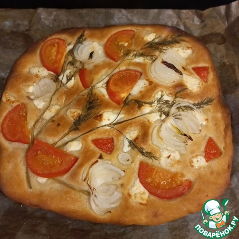 Вот и я добралась до новомодного тренда этого сезона – фокаччи-арт. Идею расписывания хлебной лепешки полюбили и сейчас можно встретить большое количество людей, желающих попробовать себя в роли пекарей - художников. Не устояла и я от искушения смастерить свою картинку на хлебной лепешке после того как увидела нарядные лепешки от yugai ludmila65. Для первого раза я выбрала незамысловатую картинку с цветами из красного лука и зелени петрушки.
