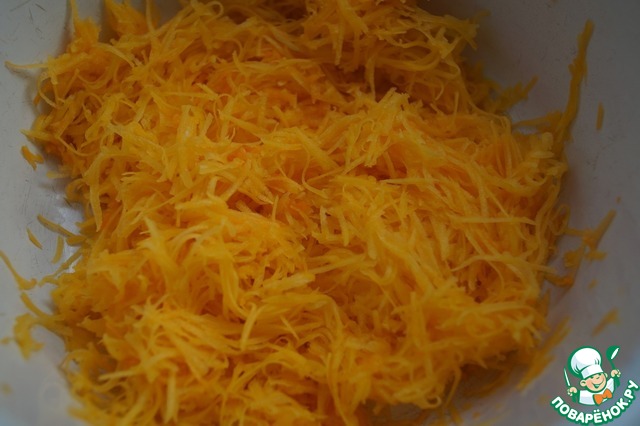 В большинстве рецептов представленных на сайте тыкву в тесто для блинов добавляют в виде пюре из отварной или запеченной тыквы. Я хочу предложить вам вариант, где тыква добавляется в свежем виде. Тыкву надо очистить и натереть на мелкой терке.