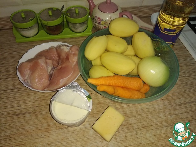 Ингредиенты для «Индейка под картофелем со сметаной»: