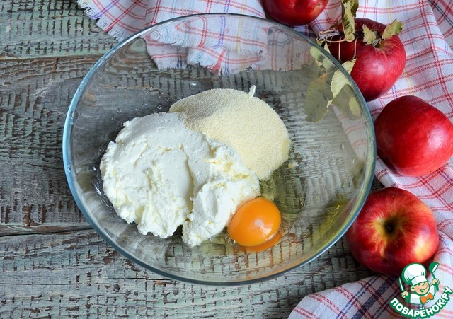 Ингредиенты для «Сырники с карамелизованными яблоками»: