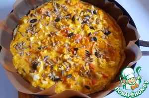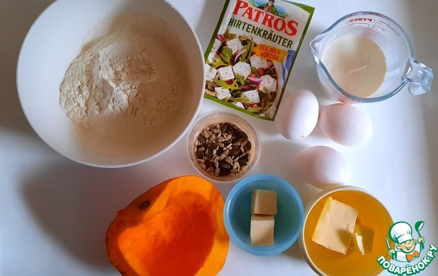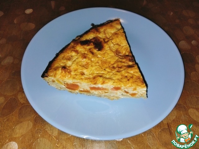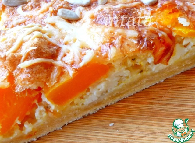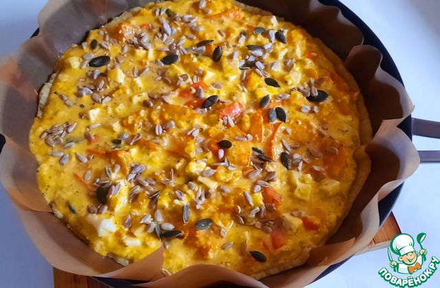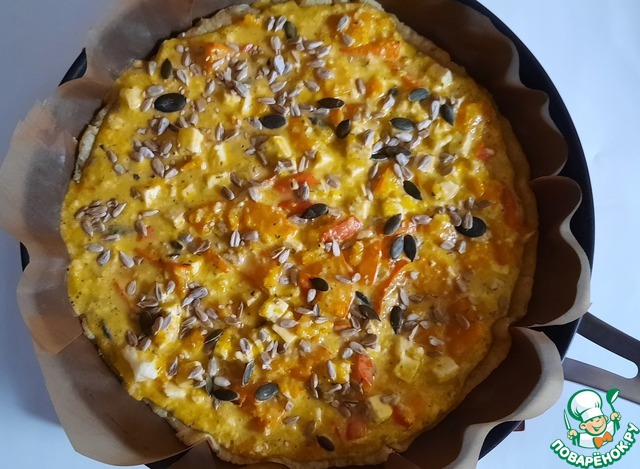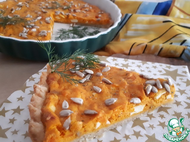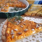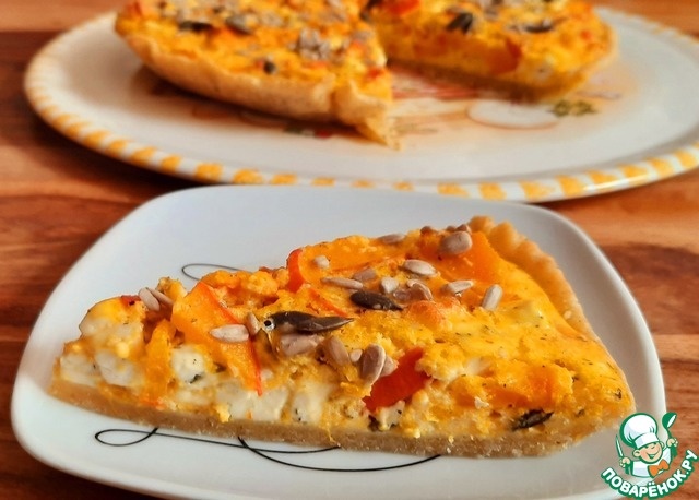 Этот рецепт у меня родился после того, как увидела Надюшин рецепт тыквенного хлеба "Осенний лист". Отрезав кусочек тыквы на хлеб, встал вопрос что сделать с остальной частью. Рецепт теста нашла на немецком сайте, а начинка моя идея. Киш получился очень нежный, нам понравился!