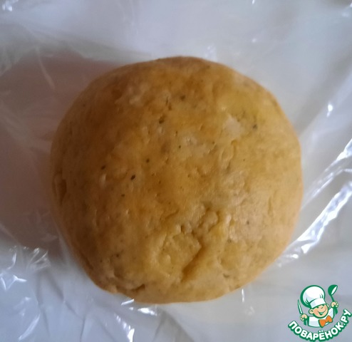 На приготовление теста надо несколько минут, для этого просеять муку, натереть твёрдый сыр, добавить яйцо, соль, сухую зелень и замесить тесто.