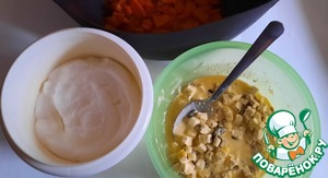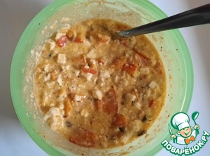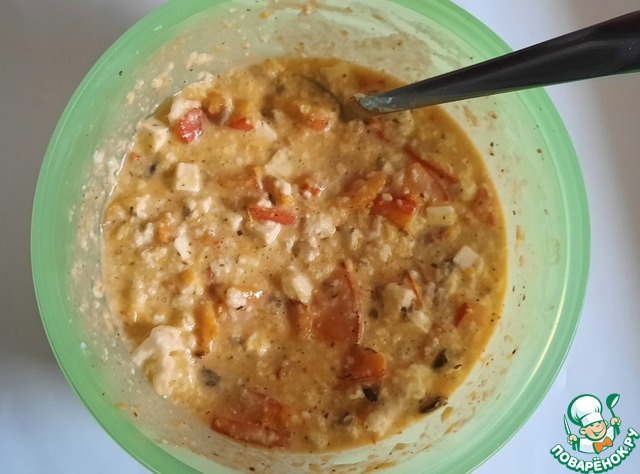Достать тыкву из духовки, слегка остудить, добавить её к начинке, размешать.