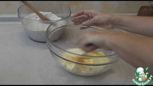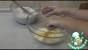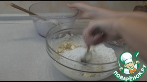 • Всыпаем понемногу сухую смесь и замешиваем тесто.