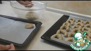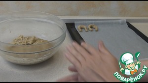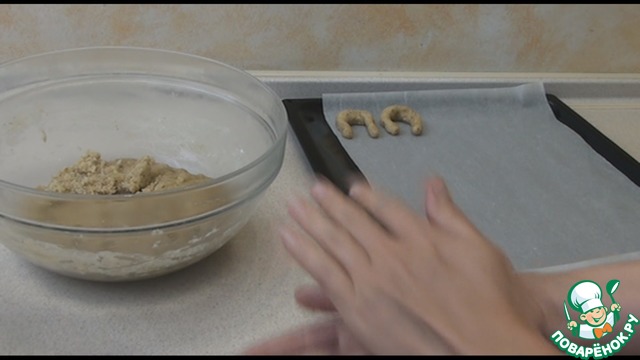 • После этого отщипываем от теста небольшой кусочек и формируем печенье. Я делала в виде подковы.