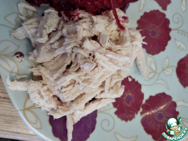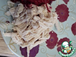 Подготавливаем необходимые продукты. Грудку индейки отвариваем в подсоленной воде. Свеклу отвариваем.