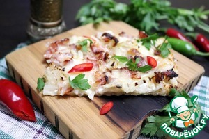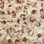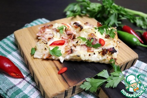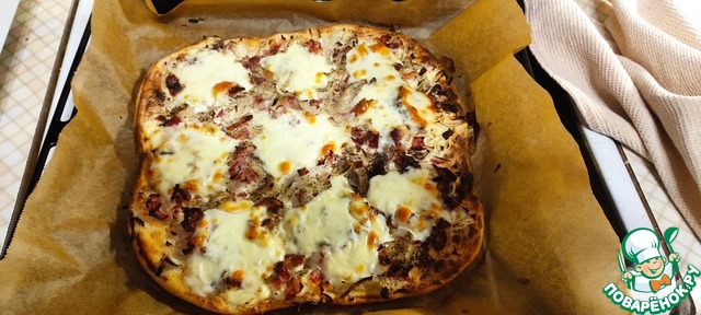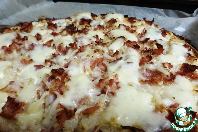 Фламмкухен - немецкий открытый пирог со сметаной, беконом и репчатым луком. Очень домашний, невероятно вкусный и совсем не хлопотный, готовить его одно удовольствие! От себя я добавила немного моцареллы, она со сметаной вкусно подружилась.