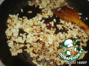 Репчатый лук почистить на нарезать и обжарить на растительном масле, до золотистой корочки.