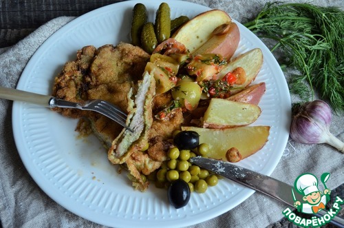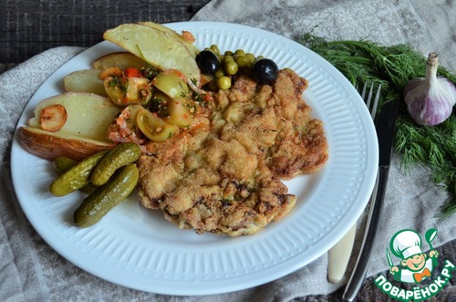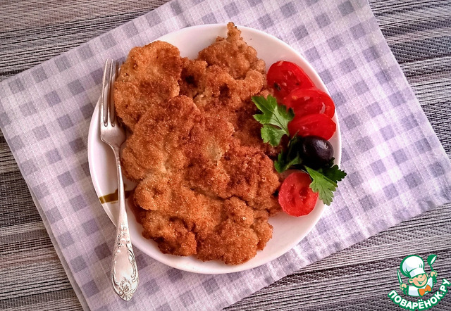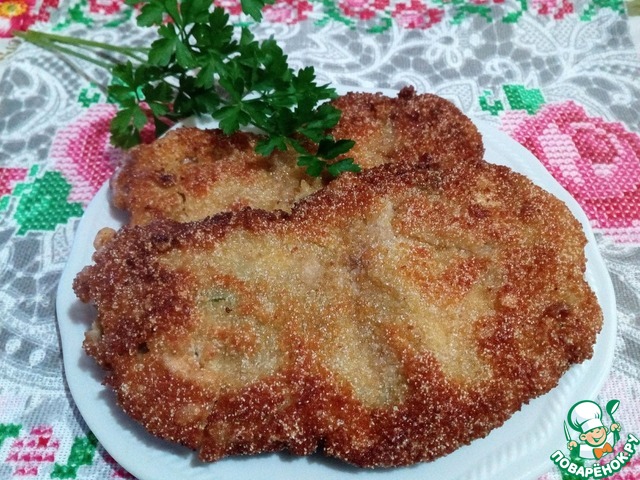 Панировка бесподобная, временнОй и температурный режимы выверены, т.к. вся сочность осталась внутри.