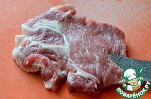Свиную шейку нарезать на 4 пласта, 1 - 1,5 см..