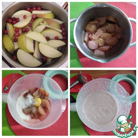 - Ассорти фруктовое (ёмкость стакана 250 мл, фрукты из-под компота, у меня яблоки и клюква) — 1 стак.