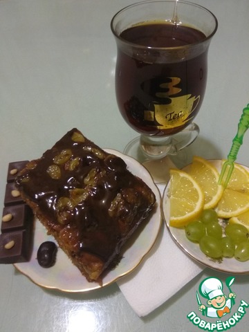 [+5]А дальше, как у Ильфа и Петрова: "Александру Яковлевичу Бог послал на обед...", т.е. нашлись в доме кедровые орешки в шоколаде, сам шоколад для дополнительной глазури и виноград киш-миш для замены в тесте фисташек и какого-никакого украшения ейного.