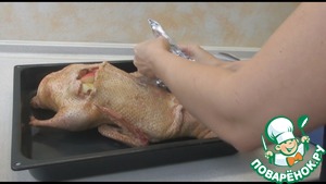 Утку помыть, просушить бумажным полотенцем. Обязательно нужно удалить жировую железу.